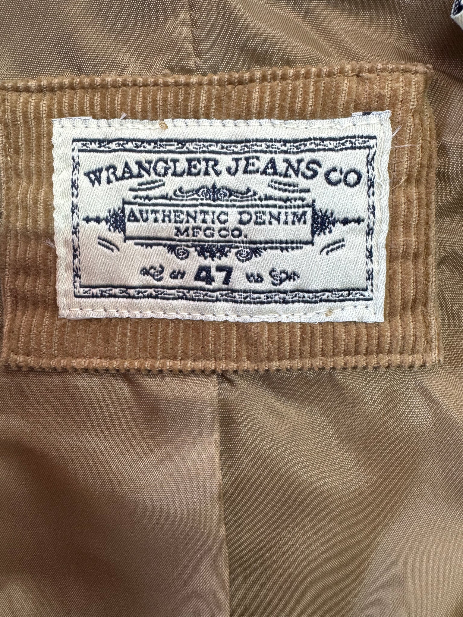 Tan corduroy blazer from Wrangler Jeans Co. great for western wear.